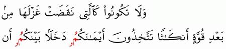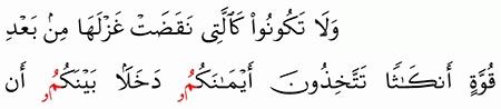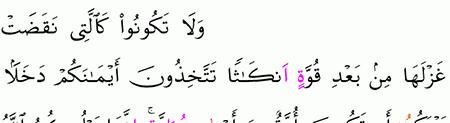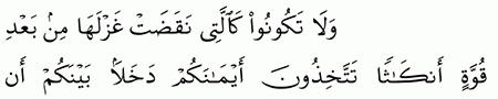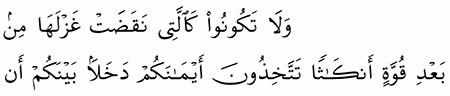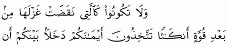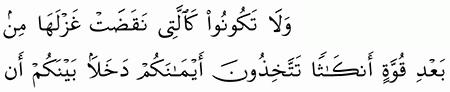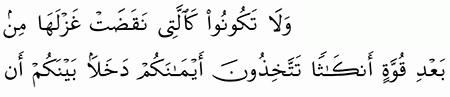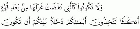 الآية رقم {92} من سورة ( النحل)