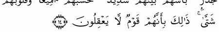 الآية رقم {14} من سورة ( الحشر)