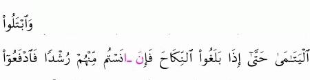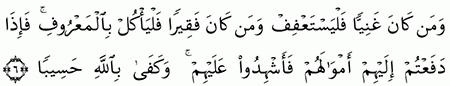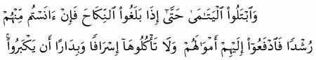 الآية رقم {6} من سورة ( النساء)